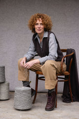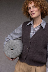 The yarn is a two-ply yarn of Nm 7.0/2, made entirely from 100% Dutch wool. The Kempen Heath sheep are primarily raised in the border region between the Netherlands and Belgium and have been an essential part of the regional agricultural system for centuries. Their wool is of fine quality, thanks in part to historical crossbreeding with merino sheep in the 19th century. Each cone contains approximately 7,000 meters of yarn, making it suitable for both small-scale craft projects and large-scale production. The fibers are carefully spun into a consistent thread, ensuring uniform thickness and strength during processing. The yarn is suitable for weaving, knitting, crocheting, and tufting, making it versatile. The wool contributes to the ecological management of the heathlands because the sheep graze the grassland. The wool is breathable and insulating, making it ideal for textiles that combine comfort and durability. The yarn's color is created by blending the wool of white and brown sheep. The cone's 2 kg weight makes it easy to calculate the correct quantities. This yarn is an excellent choice for designers who value quality and durability. It offers an ideal balance of strength, flexibility, and aesthetics, making it suitable for a wide range of applications.
