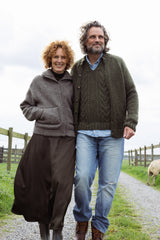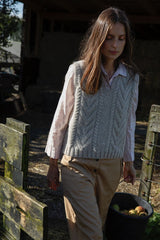 De Zus is een gebreide spencer met Aran en kabelmotief, gemaakt van lokale Nederlandse wol gemengd met zachte alpaca en merino. Door deze mix van vezels heeft de Zus een unieke mix van eigenschappen: de Nederlandse wol heeft een stoerdere uitstraling die vervolgens verzacht wordt door de toevoeging van de alpaca en merino. Deze Spencer heeft een V-hals en is ideaal om als laagje te dragen.